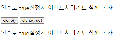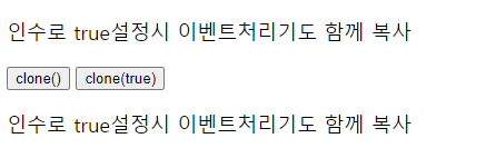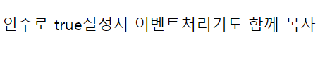 <p>인수로 true설정시 이벤트처리기도 함께 복사</p>