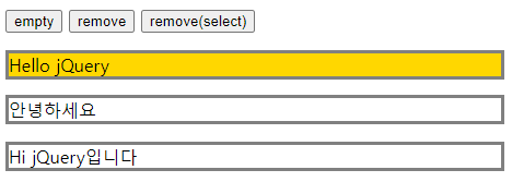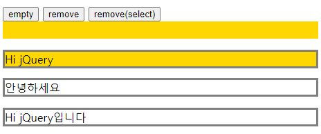 | $(selector).empty() | Selector의 자식 요소를 삭제 |