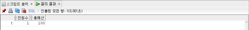 select count(*) 고용인원수, avg(SALARY) 평균급여, min(SALARY) 최저급여, max(SALARY) 최고급여 from view_emp1;