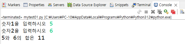 su2 = input("둘째수를 입력하시오 ")