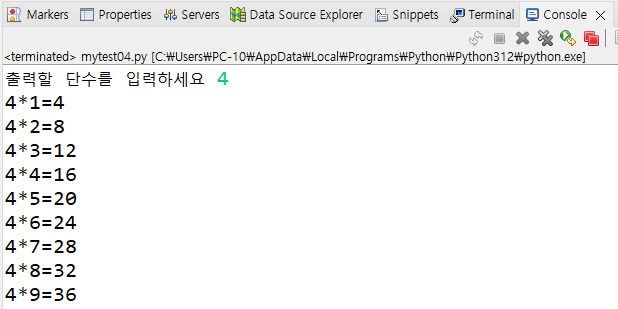 # 출력할 단수를 입력하세요 4