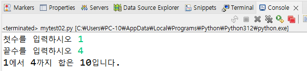 print(st + "에서 " + en + "까지 합은 " + str(sum) + "입니다.")