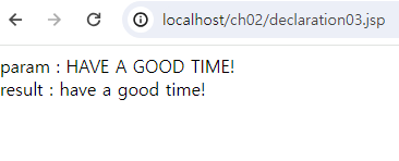 <%-- <p>result : <%=makeItLower("HAVE A GOOD TIME!")%></p> --%>