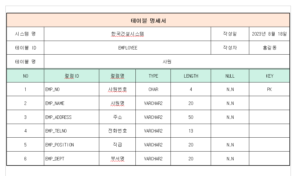 ex) 테이블 명세서 => 대부분 산출물이 완료됨.