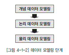 개념, 논리, 물리 데이터 모델링으로 구성되어 있다. 최종 모델링이 작성되면 그것을 산출물이라고 한다.