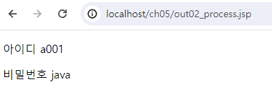 요청파라미터(HTTP파라미터, QueryString) : {id=a001,passwd=java}