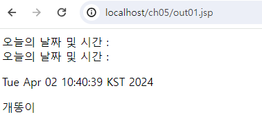 out.println("<p>" + Calendar.getInstance().getTime() + "</p>"); // ln의 의미가 없음