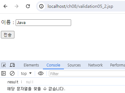 console.log("해당 문자열을 찾을 수 없습니다.");