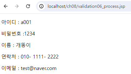 <p>이메일 : <%=request.getParameter("email")%></p>
