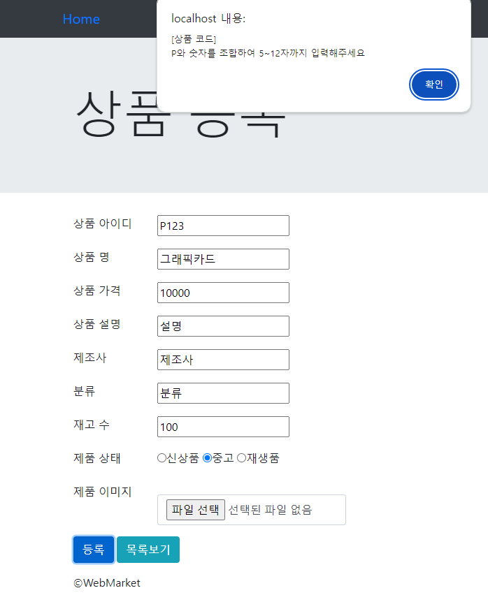 alert("[상품 코드]\nP와 숫자를 조합하여 5~12자까지 입력해주세요");