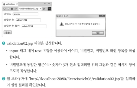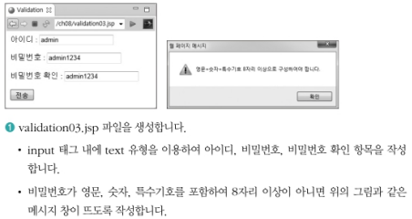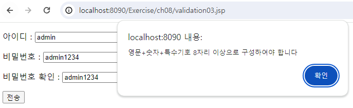 비밀번호가 영문, 숫자, 특수기호를 조합한 8자 이상이 되도록 다음 조건에 맞게 JSP 애플리케이션을 만들고 실행 결과를 확인하시오.