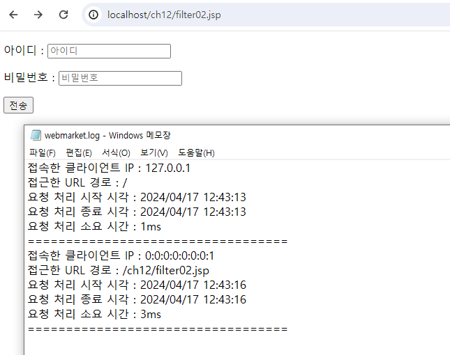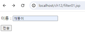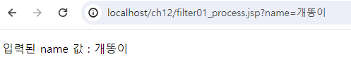// 요청URI : /ch12/filter01_process.jsp?name=개똥이