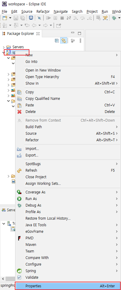 1. 프로젝트 오른쪽 마우스 클릭 > Properties 클릭