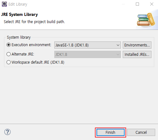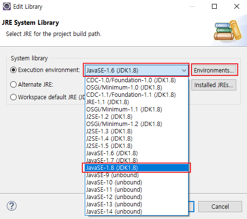 3. JavaSE-1.8 (JDK1.8)로 변경 > Environments 클릭