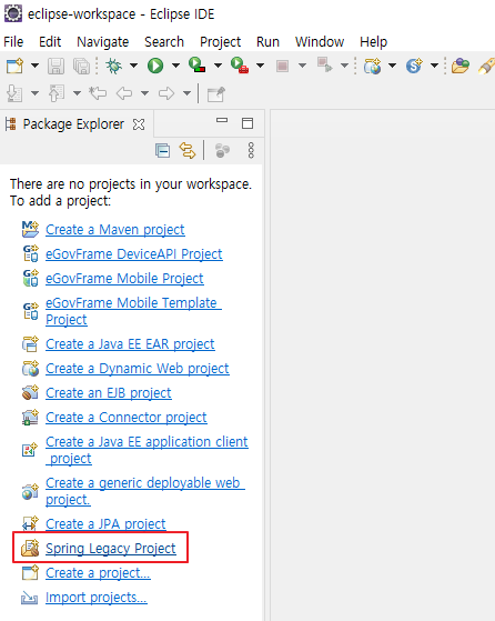 1. Spring Legacy Project 클릭