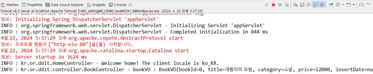 요청파라미터 : {title=개똥이의 모험, category=소설, price=12000}