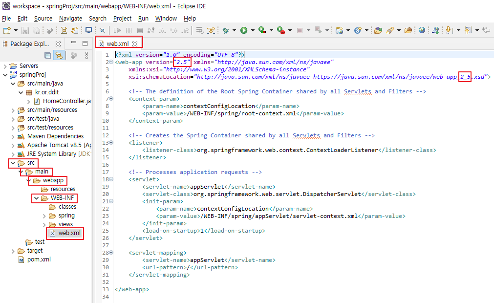 1. 위의 위치에서 web.xml 클릭 > 버전 확인