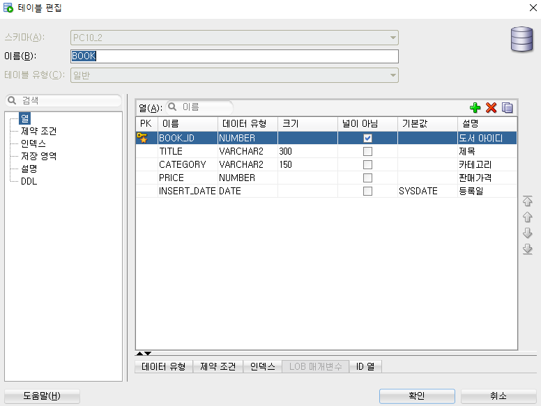 기존 book 테이블 이용