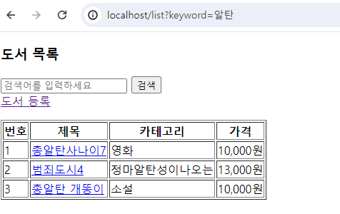 요청URI : /list?keyword=알탄 or /list or /list?keyword=