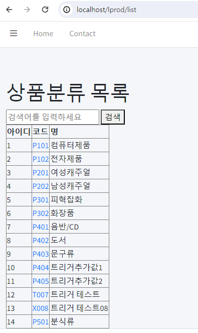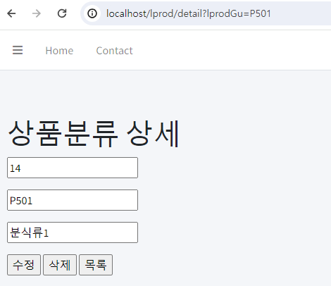 요청파라미터 : {lprodId=14,lprodGu=P501, lprodNm=분식류}