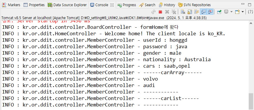 <!-- 컨트롤러의 매개변수로 ArrayList<String> carList -->