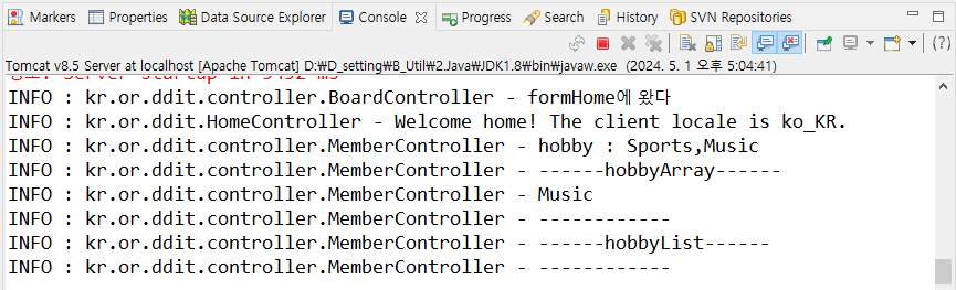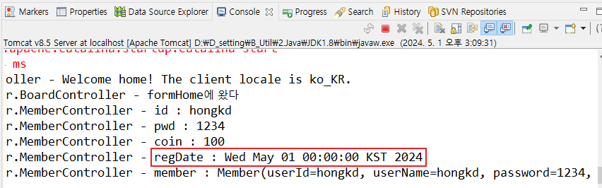 @DateTimeFormat(pattern="yyyy-MM-dd") Date regDate, //Date의 경우 어떤 패턴으로 들어오는지 알려줘야 함
