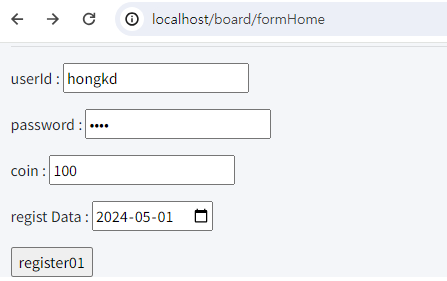 요청URI : /registerByGet01?userId=hongkd&dateOfBirth=1234