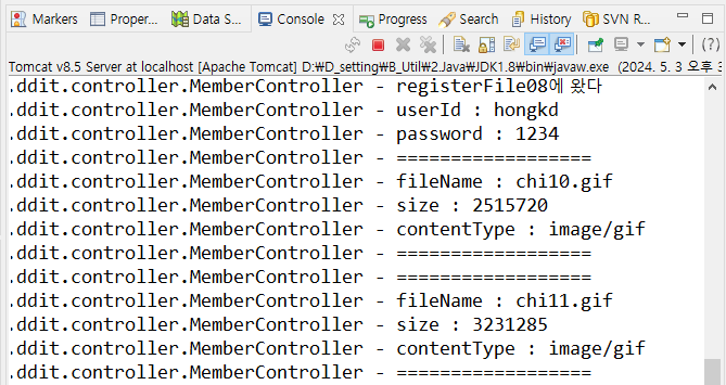 web.xml에서의 20MB까지 설정했어도 여기서 10MB까지로 한다면 10MB를 기준으로 한다.