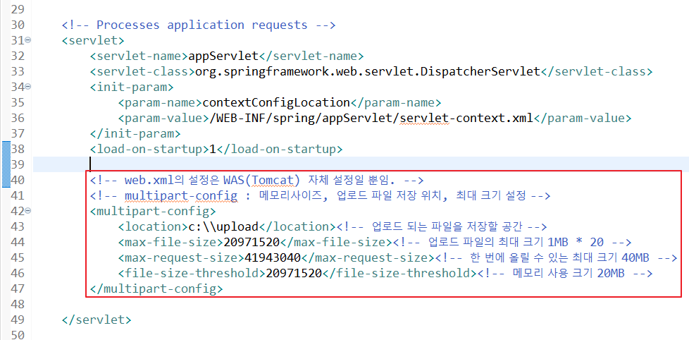 <max-request-size>41943040</max-request-size><!-- 한 번에 올릴 수 있는 최대 크기 40MB -->