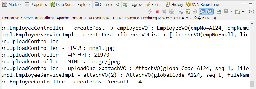 result += uploadController.uploadOne(uploadFile, employeeVO.getEmpNo());