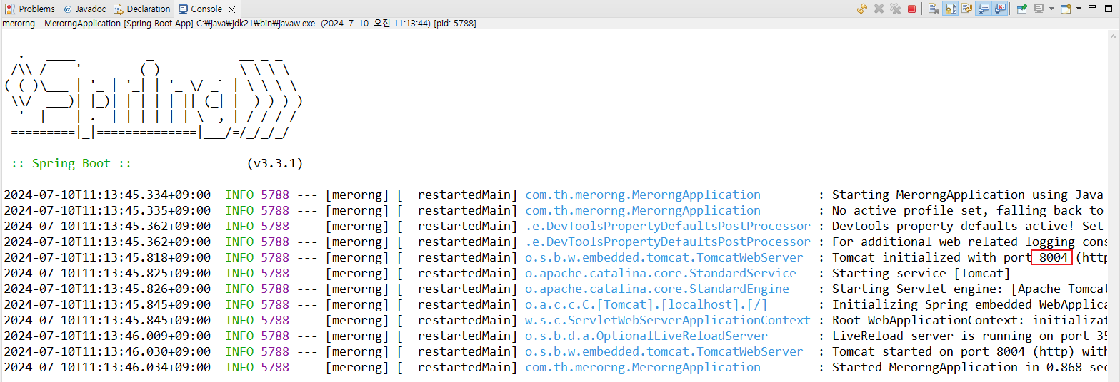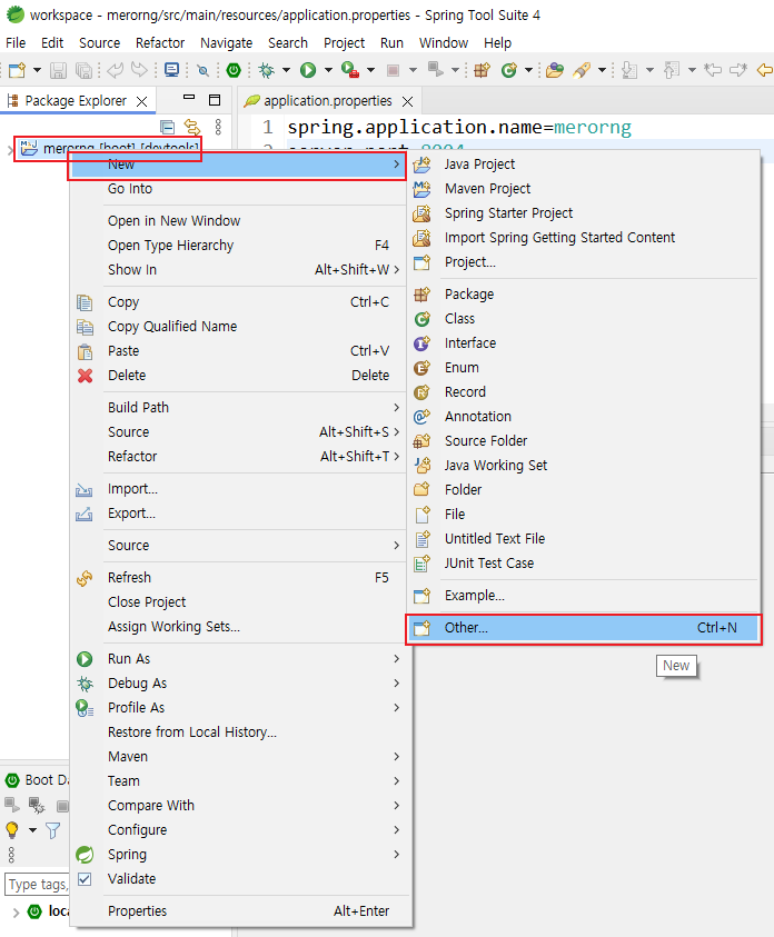 1. application.properties 클릭 > server.port=8004 입력 후 저장