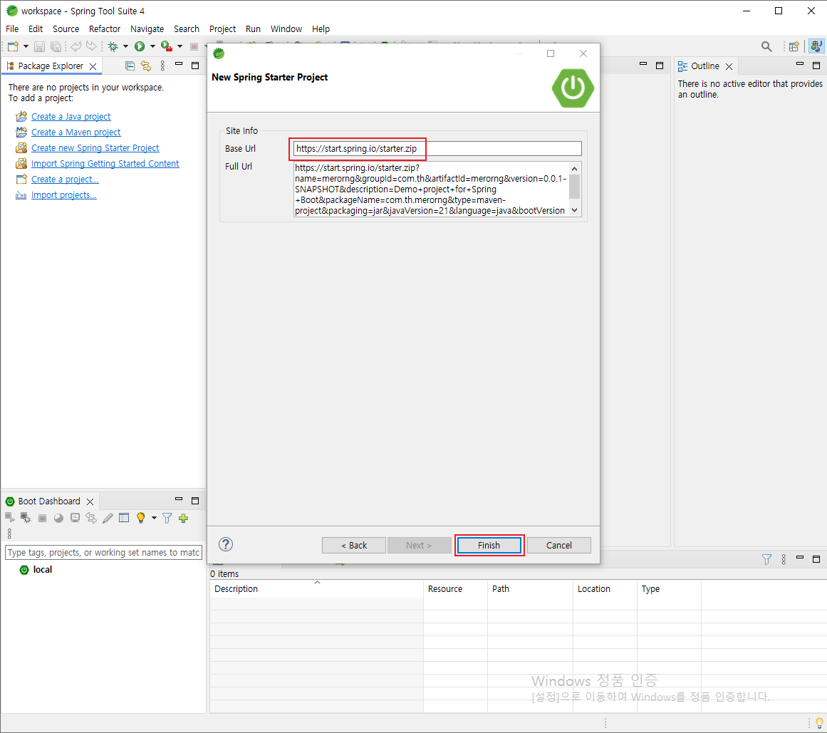 5. 링크 확인 > Finish 클릭