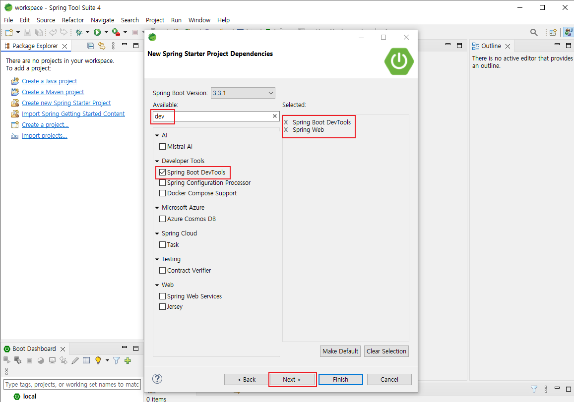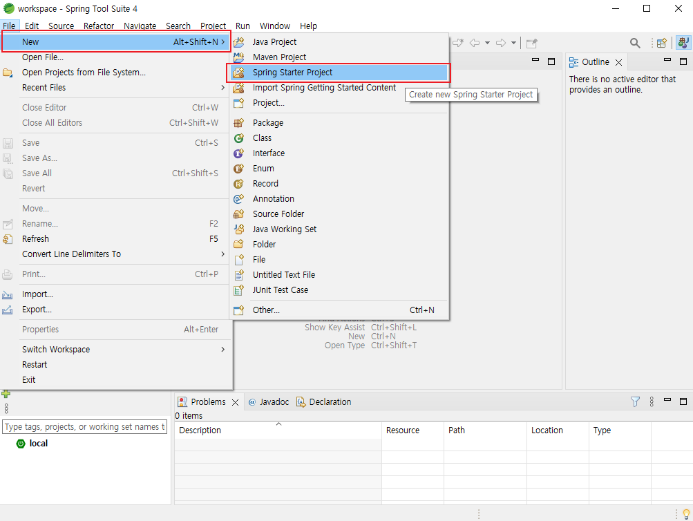 2. New > Spring Starter project 클릭