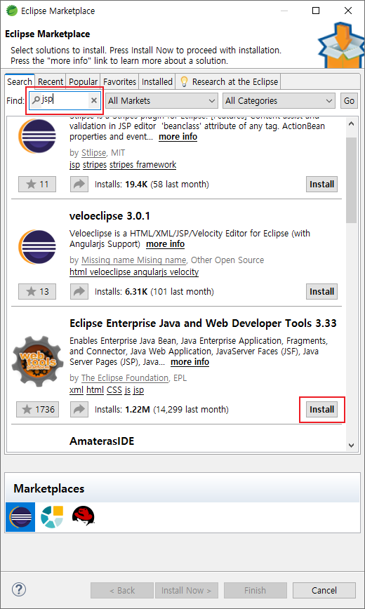 2. jsp 검색 > Install 클릭 > 쭉 진행