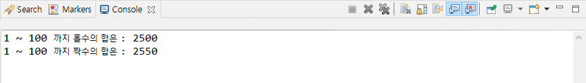 System.out.println("1 ~ 100 까지 홀수의 합은 : " + sum_h);