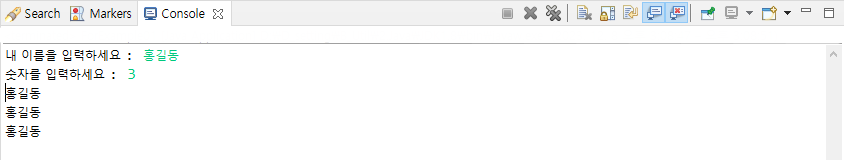 * 2. 숫자를 입력해서 입력된 숫자 만큼 내 이름이 출력되게 할 것.