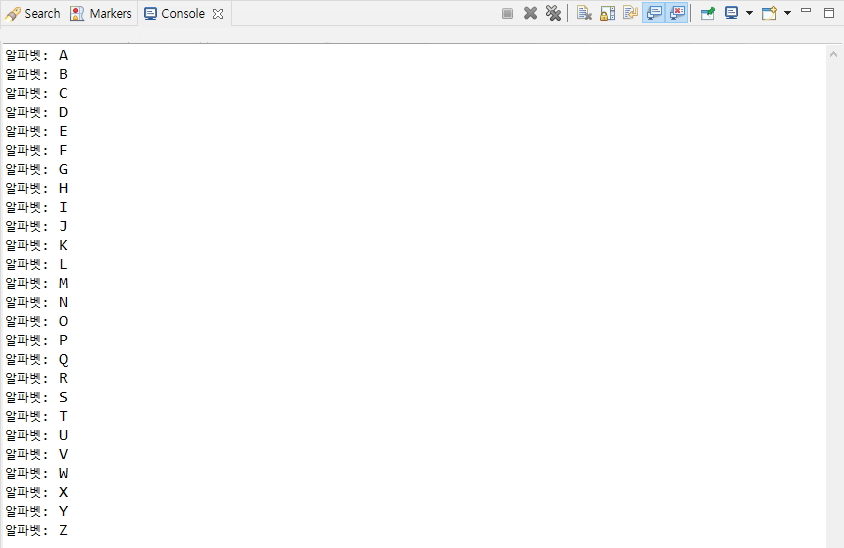 // A 부터 Z 까지 알파벳을 모두 출력하시오.