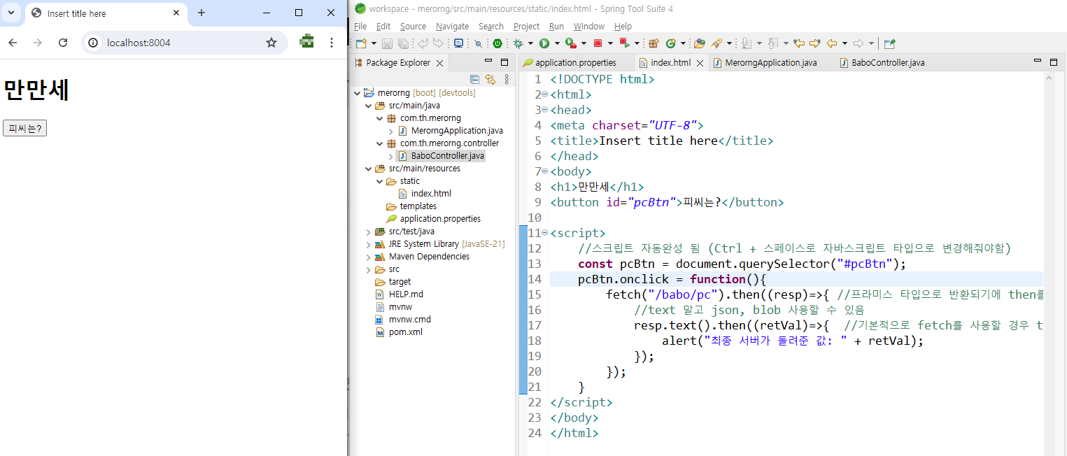 fetch("/babo/pc").then((resp)=>{ //프라미스 타입으로 반환되기에 then를 사용할 수 있음