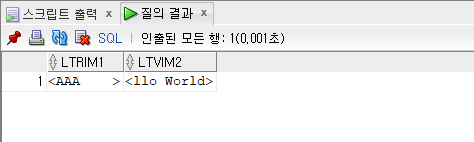 select '<' || ltrim(' AAA ') || '>' "LTRIM1",