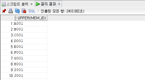 -- 회원테이블의 회원ID를 대문자로 변환하여 검색하시오.