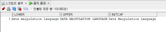 -- 전부 소문자로, 전부 대문자로, 첫글자만 대문자로 나머지는 소문자로 변환
