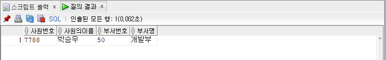 7. 사원번호가 7788인 사원의 이름과 부서번호, 부서명을 출력하시오.