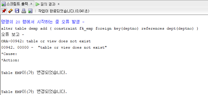 -- emp의 deptno의 타입과 dept의 deptno의 타입이 달라서 오류가 발생하므로 변경 가능한 emp의 deptno의 타입을 변경 후 설정하면 오류 없이 작동된다.