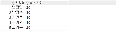 select ename 사원명, sal 급여, deptno 부서번호 from emp