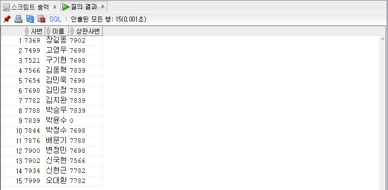 -- and b.empno <> 7369; 의 경우 자기 자신은 제외