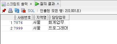 -- 23. NATUAL JOIN을 이용하여 대전에 근무하는 모든 사원의 이름, 업무, 부서번호 및 부서명을 출력하시오.