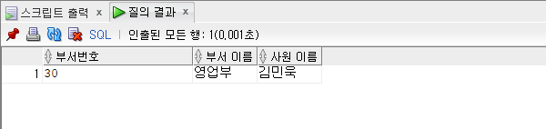 18. EQUL 조인을 사용하여 김민욱 사원의 부서번호와 부서 이름을 출력하시오.
