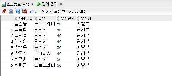select e.deptno 부서번호, d.dname "부서 이름", e.ename "사원 이름" from emp e, dept d