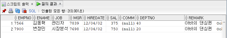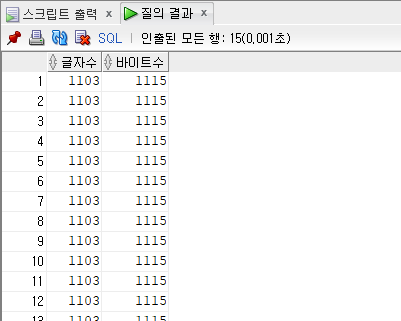 select length(remark) 글자수, lengthb(remark) 바이트수