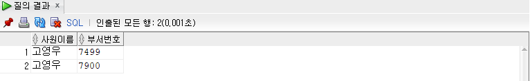 25. SELF JOIN을 사용하여 지정한 사원의 이름, 부서번호, 지정한 사원과 동일한 부서에서 근무하는 사원을 출력하시오. (고영우)